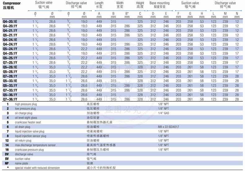 | 壓縮機(jī) | 系列 | A-B-D | Q | S | V | Z | W |